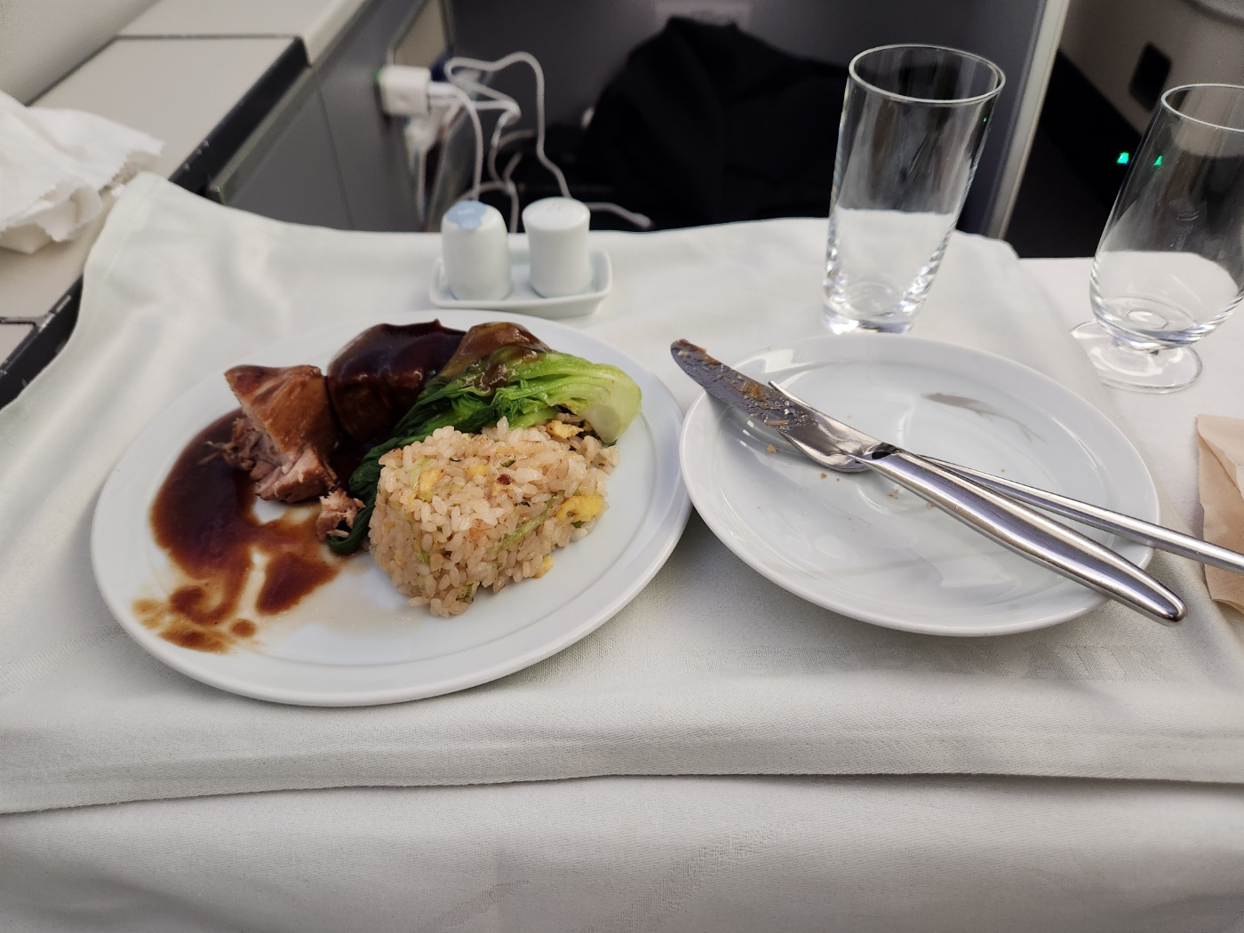 두 번의 식사가 나오는데, 두 번 모두 코스요리이며, 첫 식사는 5가지 메뉴, 두 번째 식사는 3가지 메뉴로 코스가 나온다. 올 때 갈때 모두 동일한 방식이었다.