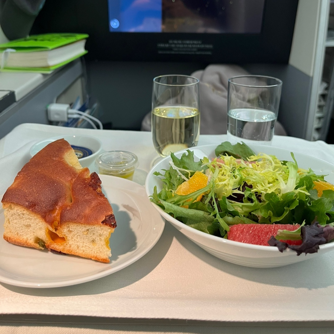 아래는 미국에서 인천으로 돌아올 때의 기내식 사진이다. 여긴 다행히 샐러드 등 에피타이저부터 찍어놨다.