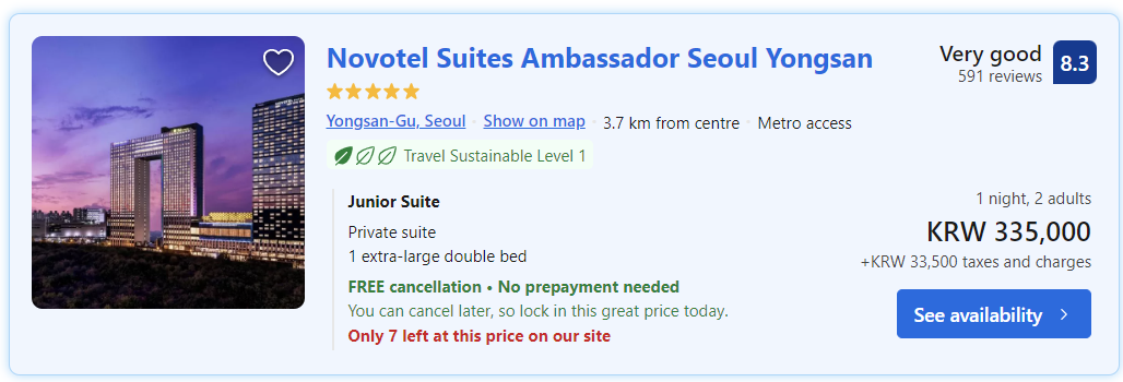 서울의 중심에서 넓은 5성급 호텔을 찾는다면?