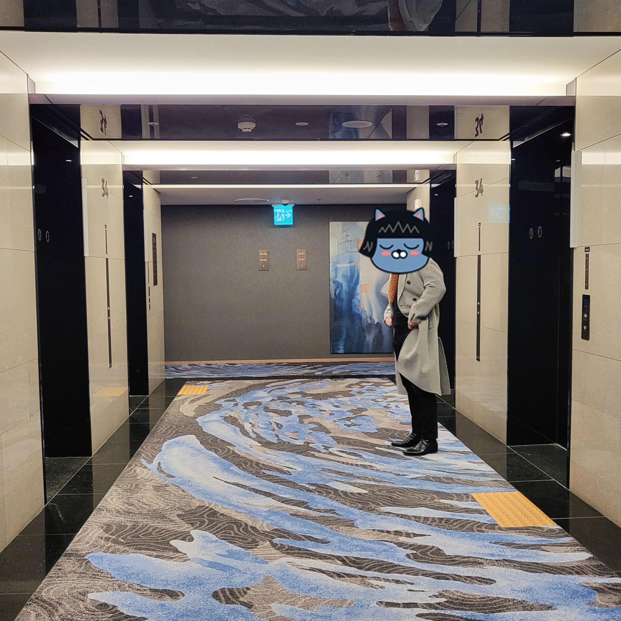 기다릴 자리도 없어서 모르는 사람과 테이블을 공유하며 기다렸습니다. 오히려 왼편에 있는 이코노미호텔 이비스스타일이 체크인하기 훨씬 좋아보이더라고요. 체크인은 첫인상인데, 아쉬움이 컸습니다.