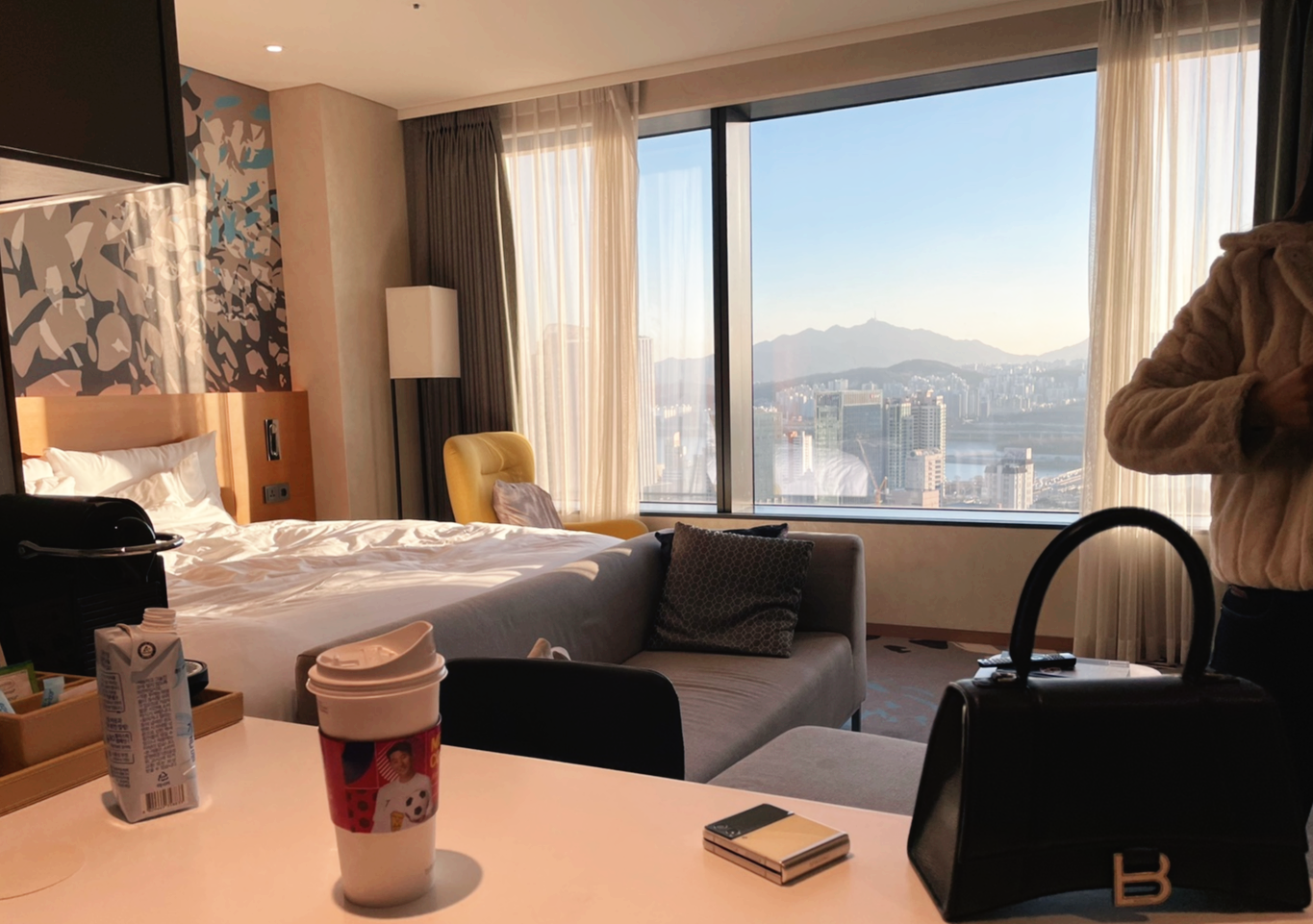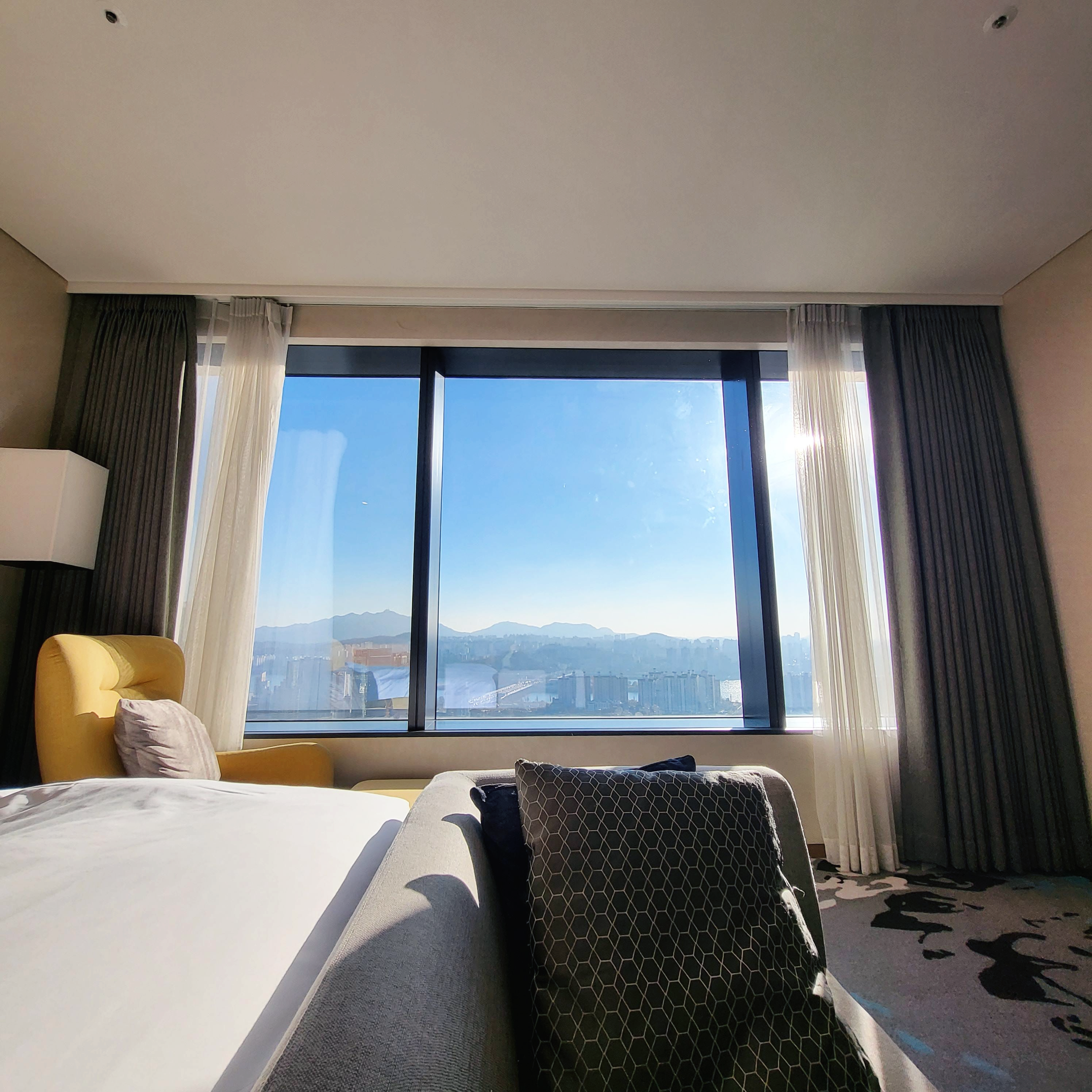 허나 체크인 때 받았던 유쾌하지 않은 경험이 객실 전망을 보고 한번에 풀려버렸습니다. 한강 반대편이 한 눈에 내려다보이는 창밖 풍경이었거든요.
