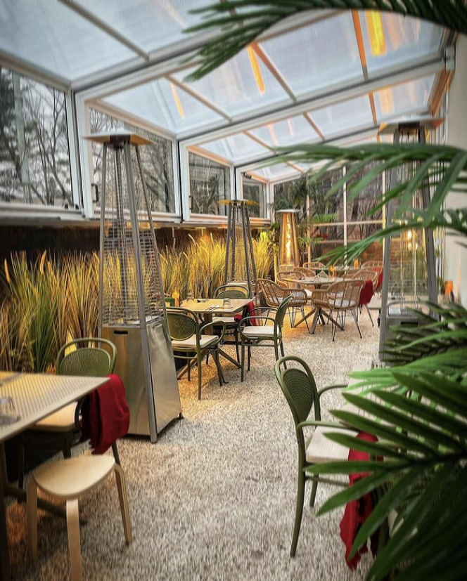 유리 테라스가 인상적이었다. 여자분들이 앉아서 먹고 있었는데 겨울이라 춥긴한지 외투를 모두 입고 식사 중.