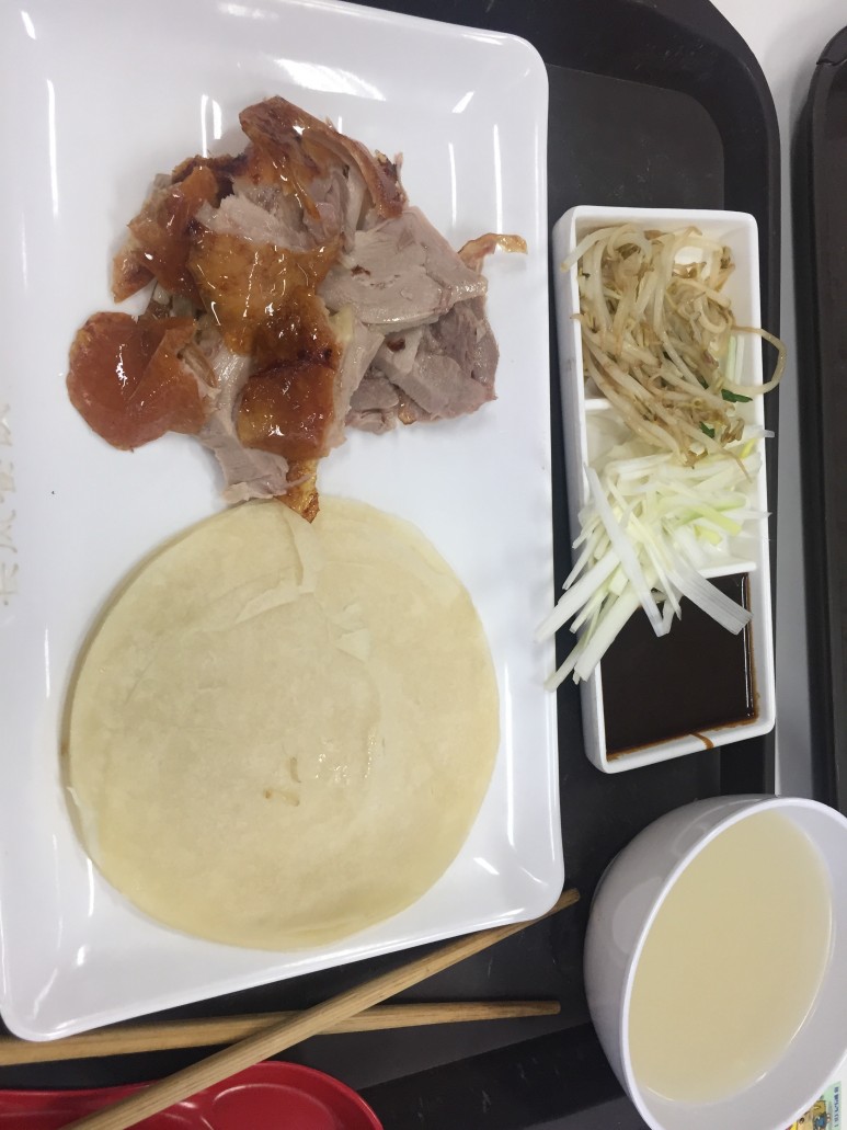 2학기 때인가 신메뉴로 '카오야(烤鸭, 북경오리)'가 생겼습니다. 가격은 18원이었습니다. 한국돈으로 3000원 정도. 18위안은 학식 메뉴 중에 가장 비싼 금액에 속합니다. 처음에 받았을 땐 양이 적다고 생각했는데 먹으면 배가 부릅니다. 아래 사진 중 오른쪽이 당시 신메뉴였던 '카오야'입니다. 인기가 많았던 카오야는 고정메뉴가 되었습니다.