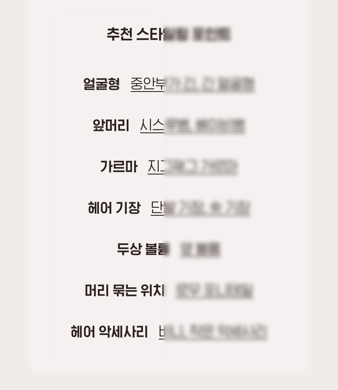앞머리, 가르마, 헤어기장, 두상볼륨, 머리 묶는 위치, 어울리는 헤어 악세사리를 추천한다.