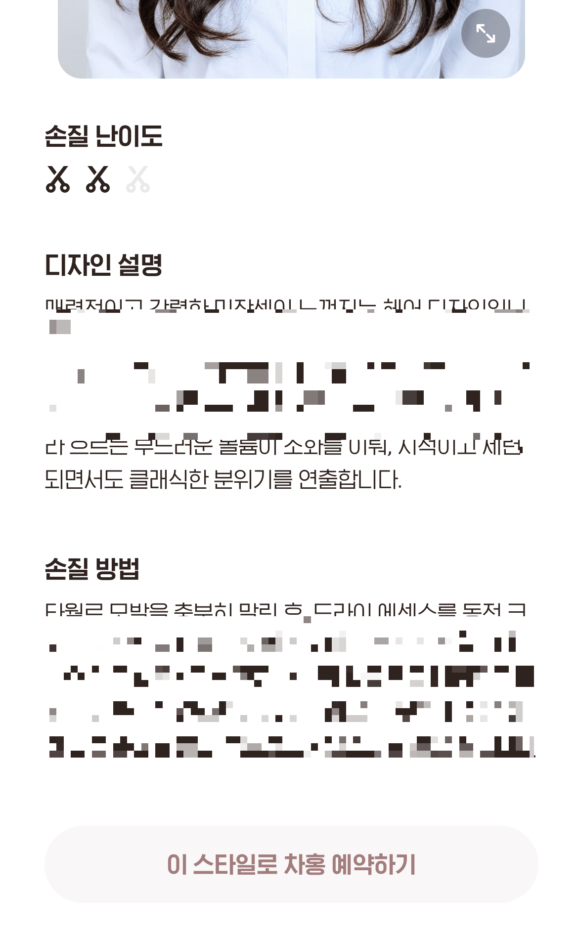 이어서 각 사진별로 손질 난이도와 디자인 설명, 손질 방법이 상세하게 안내되어 있다.